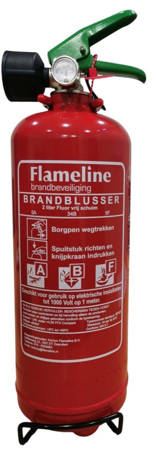 De Flameline SFV2 is een PFAS vrije schuimblusser met een inhoud van 2 liter en heeft een speciale eigenschap waardoor hij geschikt is om branden te blussen waarbij vet, vloeistoffen en vaste stoffen betrokken zijn. Het is een milieuvriendelijke schuimbrandblusser.